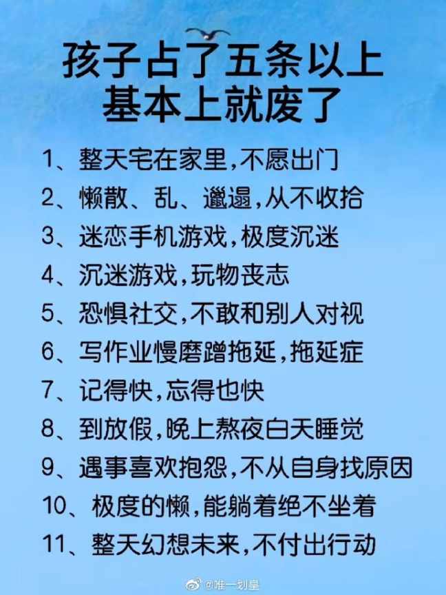 孩子占其中五条基本就废了