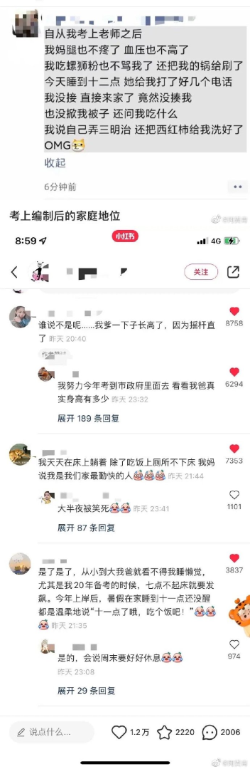 论考上编制后的家庭地位。