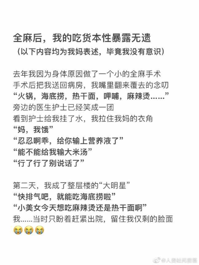 全麻后吃货本性暴露无遗。