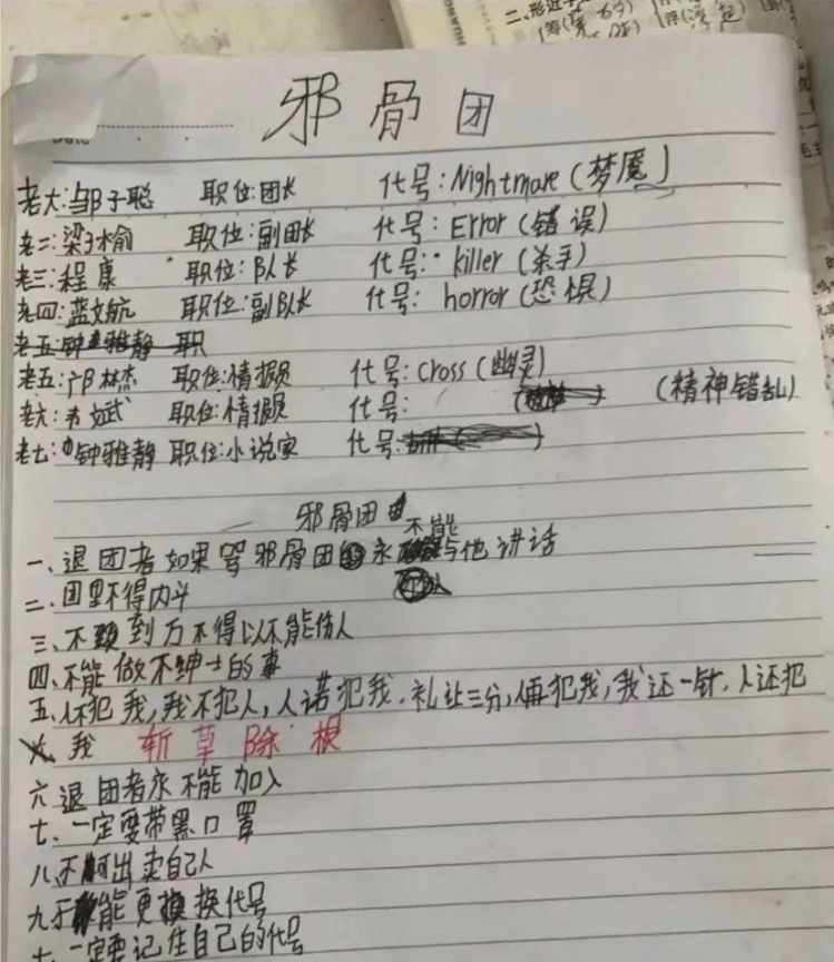 PS:这“恐怖组织”一个班主任就能消灭了。