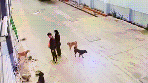刚蹲下看被拴住的狗子,
