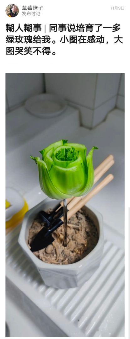 同事说培育了一朵绿玫瑰给我。