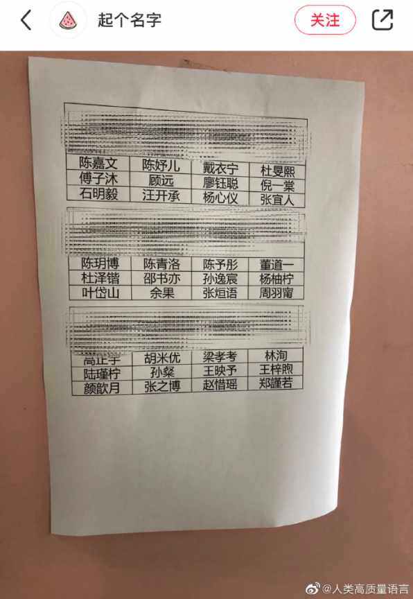 PS:以后两个字的才是稀缺名字。