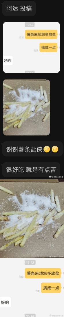 买盐还送你薯条吃。