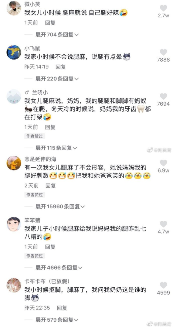 小朋友对腿麻的描述。